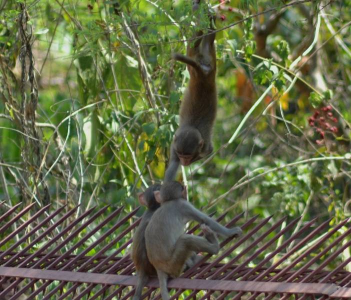 Mother monkey feeding the children