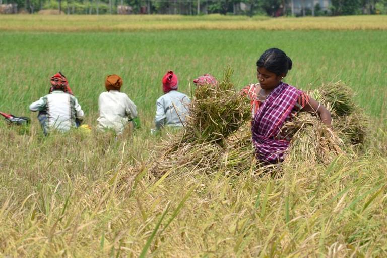 Farmers take home the ripe rice